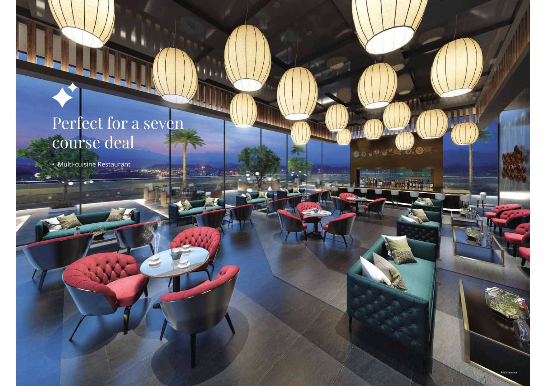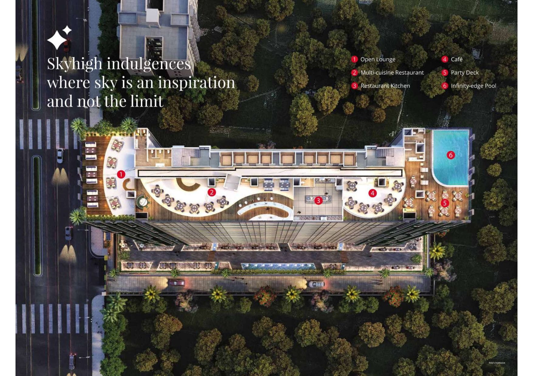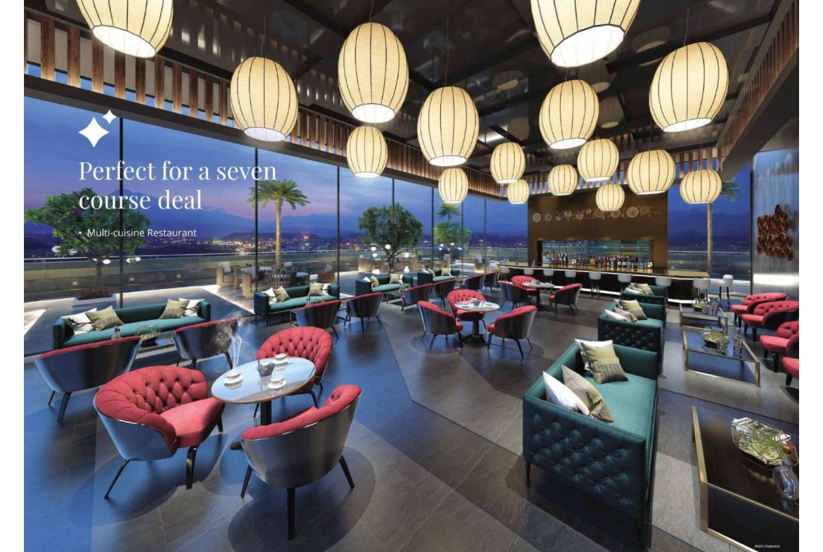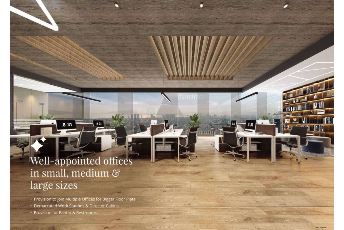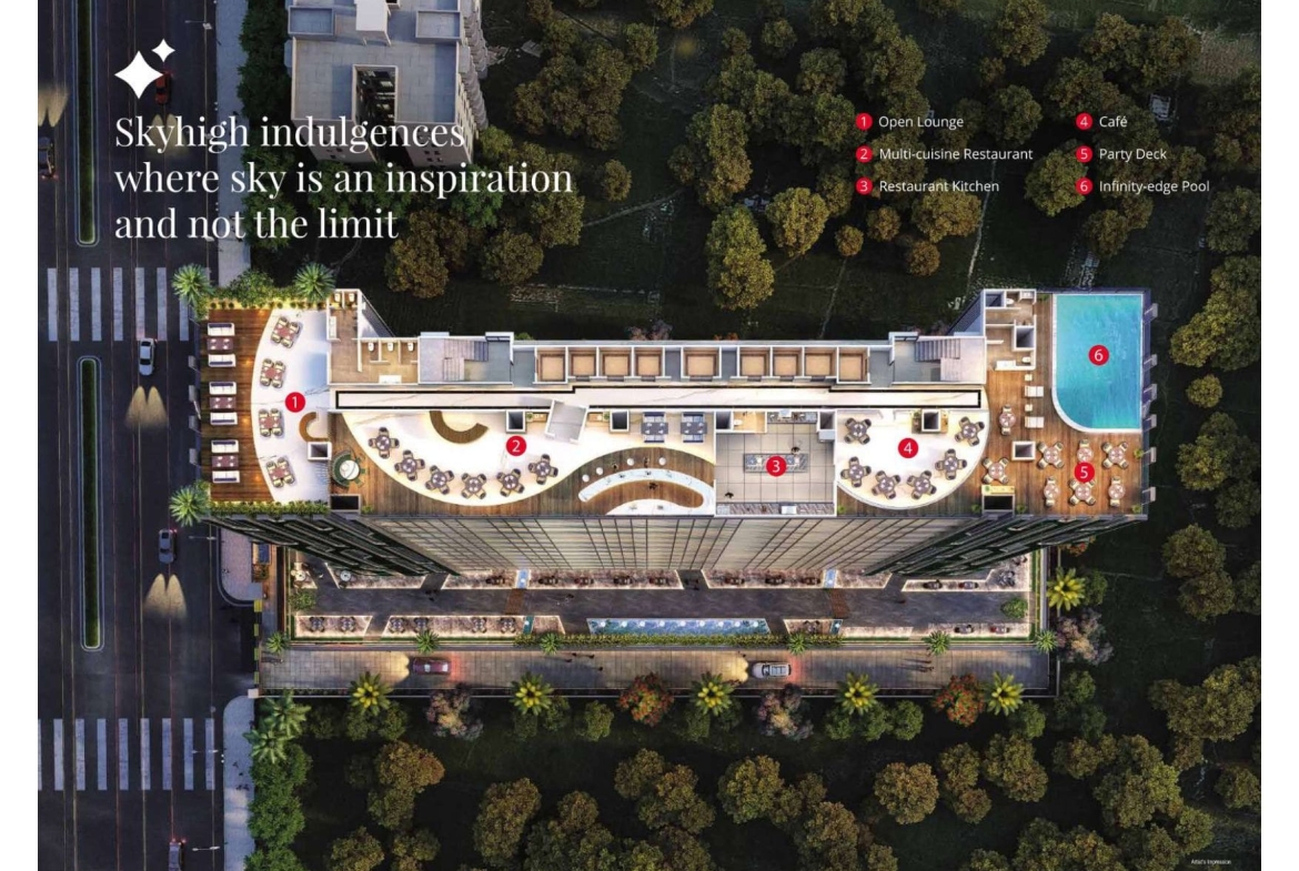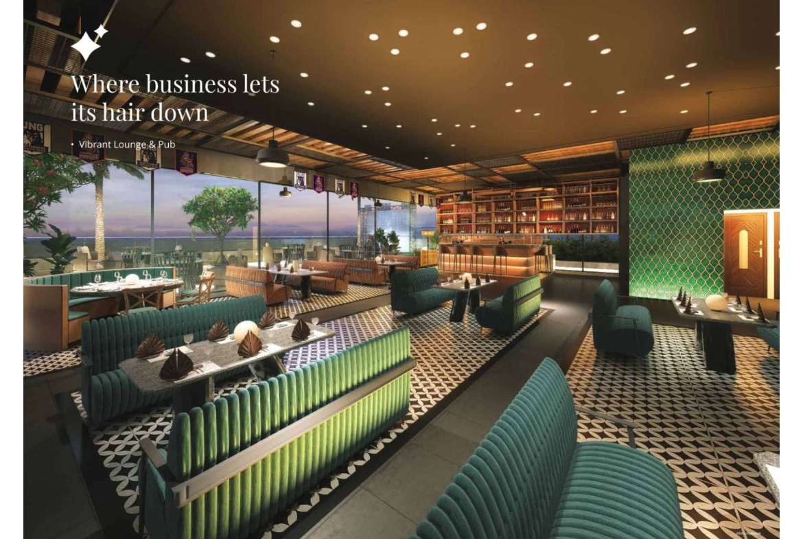 The project is designed to combine work and leisure, featuring amenities such as a conference room, EV charging points, green lawns, indoor games, a rooftop café, an infinity-edge pool, a lounge & pub, and multi-tier security, among others. Its structure is earthquake-resistant, and it includes facilities such as power backup, fiber-optimized internet, and WiFi-enabled podiums.