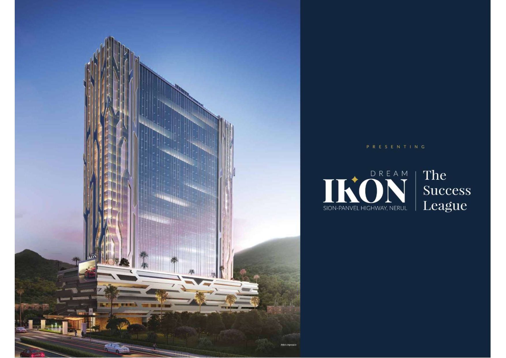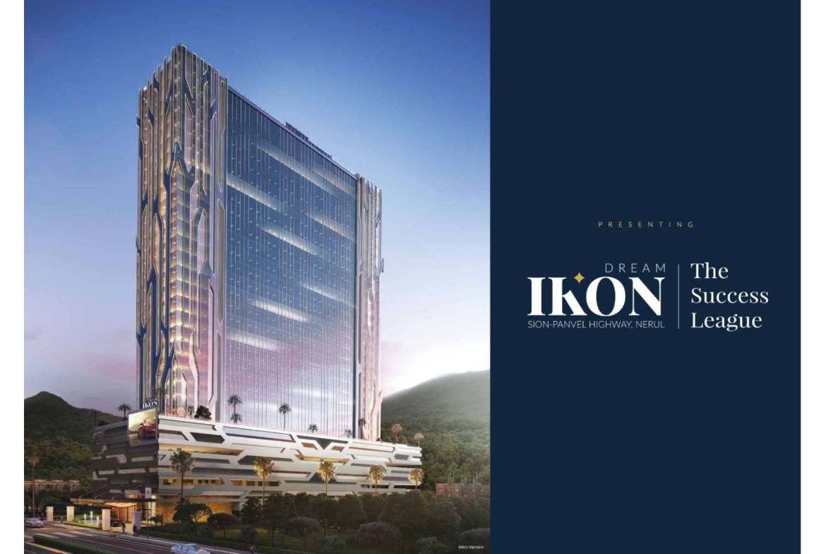 Dream Ikon is a premium 30‑storey commercial Project, located in Nerul, Navi Mumbai. Situated on a 0.98‑acre plot opposite the D.Y. Patil Stadium, the building offers modern office spaces ranging from approximately 375 sq ft to 675 sq ft (carpet), with pricing starting from around ₹ 63.75 lakh all-inclusive.