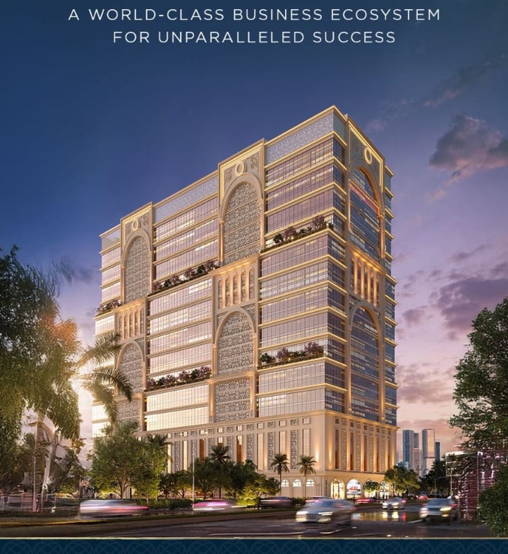 What sets the project apart are its lifestyle amenities and architectural highlights: pyramid‑themed landscaped gardens, an infinity swimming pool, dual gyms, a spacious clubhouse, multipurpose sports turf, a jogging track, a pickleball court, designer lobbies, valet & concierge services, and a three‑tier security system with CCTV/RFID and high‑speed elevators. On the commercial side, the office tower offers sea and mountain views, double‑height lounges, smart layouts ( 30 offices per floor ), and road‑facing retail that suits automobile showrooms, lifestyle brands, restaurants, etc.